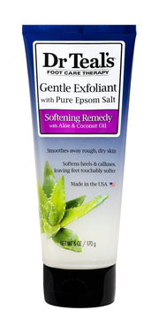 Pamper your feet with Dr. Teal's Gentle Exfoliant Foot Scrub. Infused with Epsom Salt, this scrub exfoliates and soothes tired feet, leaving them soft and refreshed. 6-ounce tube.