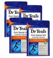Dr. Teals Pre & Post Workout Epsom Salt Soaking Solution is a blend of essential oils and pure Epsom salt. This 4 Pack, 3lbs each, eases aches, soreness, and daily stress for a relaxing at-home recovery experience.
