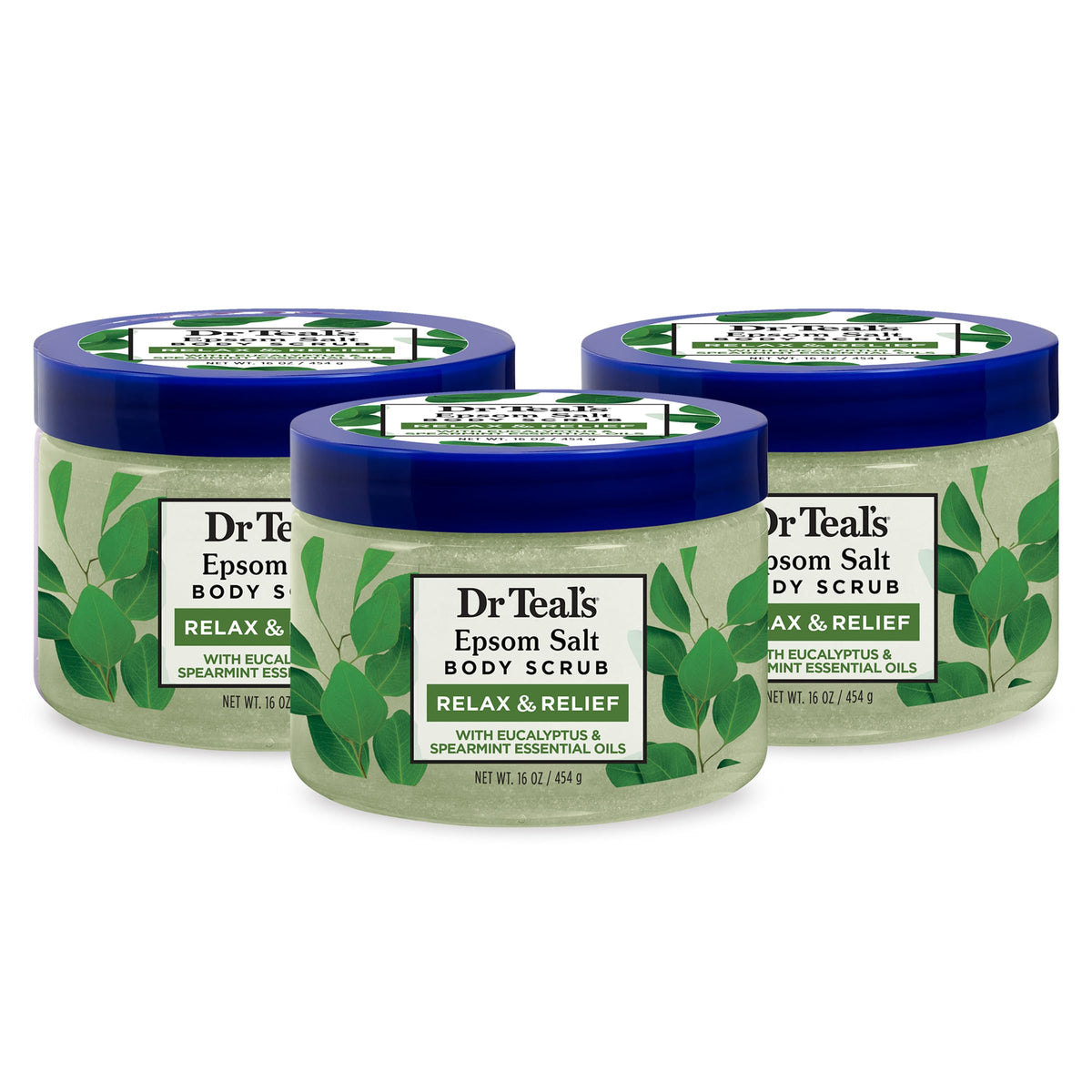Dr Teal's Pure Epsom Salt Body Scrub, Relax & Relief with Eucalyptus & Spearmint Essential Oils, 16 oz (Pack of 3)