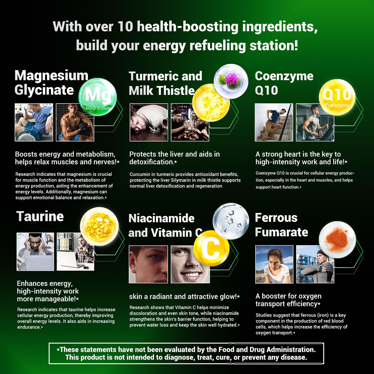 DrBioCare Energy Boost & Magnesium Glycinate, Contains Vitamin D3, Vitamin C, Turmeric Supplement, Ashwagandha Supplement, Milk Thistle, Calcium Supplement & Magnesium Supplement 120 Tablets