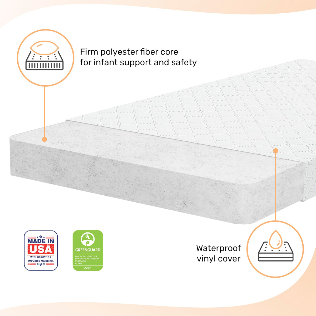 Product Benefit :: Provides firm support and comfort for babies in mini and portable cribs with a waterproof, easy-to-clean cover