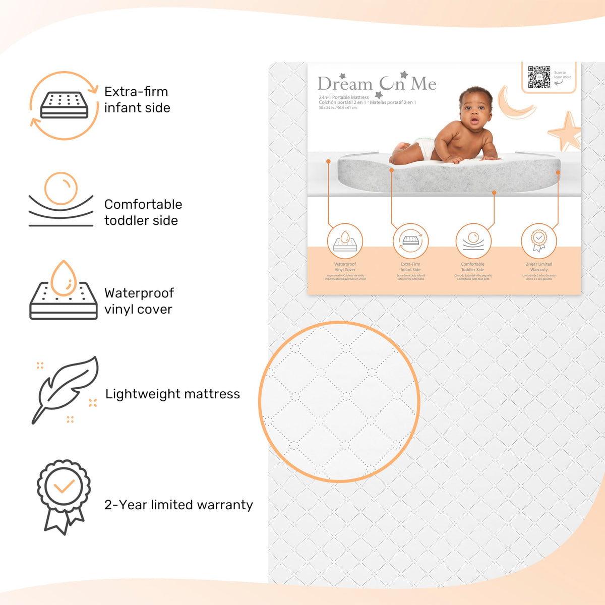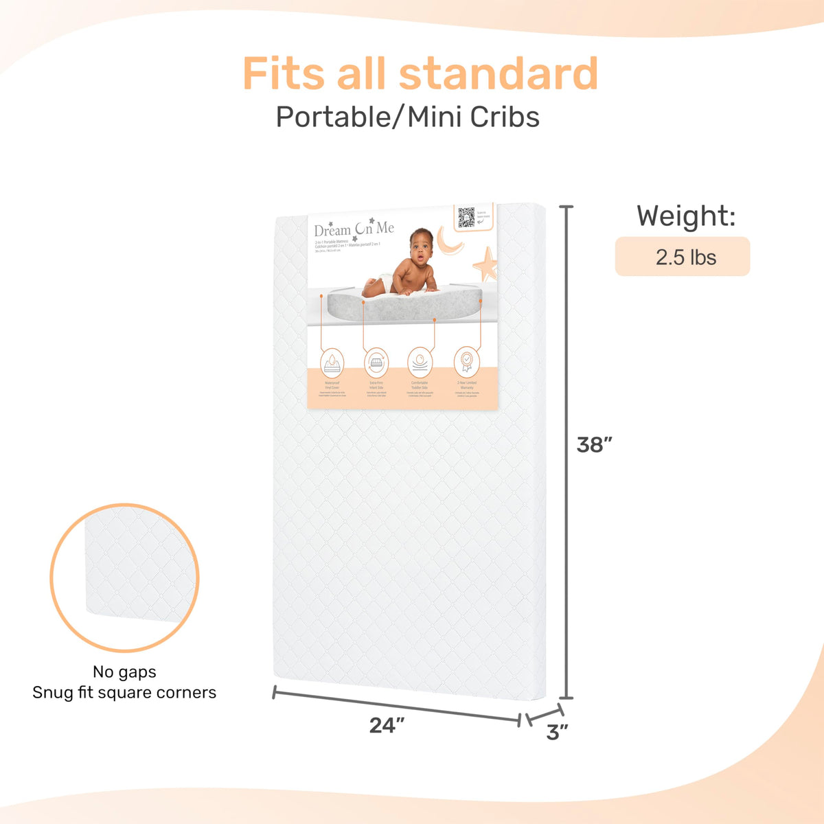 The Dream On Me Sunset 3” Extra Firm Mini/Portable Crib Mattress is a premium choice for your baby's comfort and safety. It fits all mini and portable cribs, providing a supportive and durable sleeping surface.
