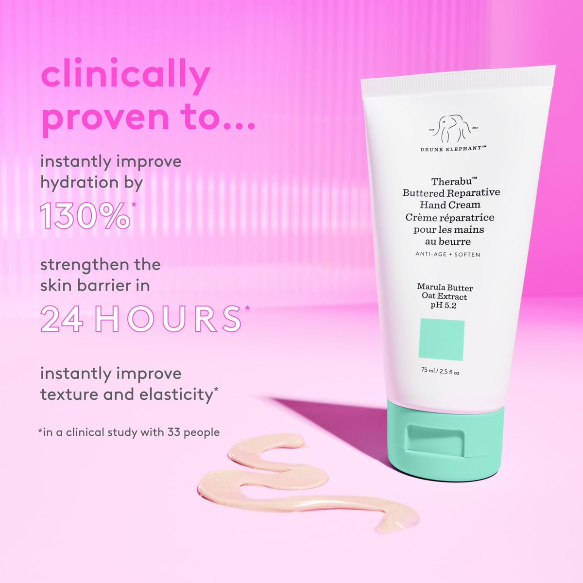 Drunk Elephant Therabu Buttered Reparative Hand Cream - 75 ml/2.5 fl oz - Hand Lotion - Clean Clinical Skincare - Cruelty-Free - Dermatologist-Tested - Free of Essential Oils, Silicones, and Fragrance