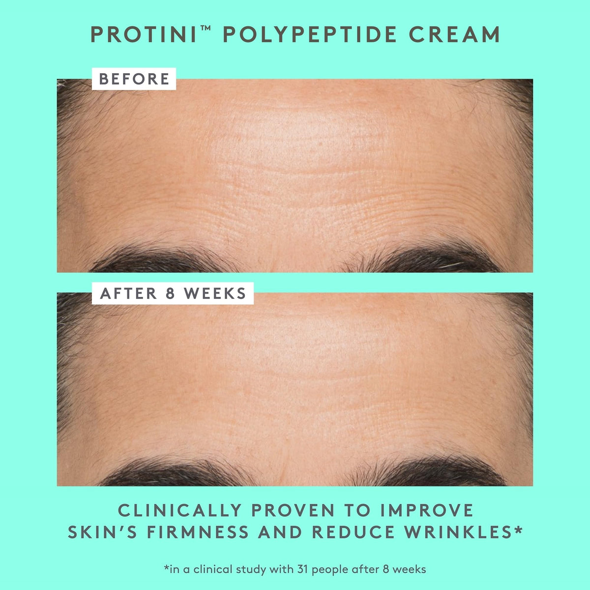 Ingredients: Protini Polypeptide Cream WaterAquaEau, Dicaprylyl Carbonate, Glycerin, Cetearyl Alcohol, Cetearyl Olivate, Sorbitan Olivate, Sclerocarya Birrea Seed Oil, Bacillus Folic Acid Ferment Filtrate Extract, Nymphaea Alba Root Extract, shOligopeptide1, shOligopeptide2, shPolypeptide1, shPolypeptide9, shPolypeptide11, Copper Palmitoyl Heptapeptide14, Heptapeptide15 Palmitate, Palmitoyl Tetrapeptide7, Palmitoyl Tripeptide1, Alanine, Arginine, Glycine, Histidine, Isoleucine, Phenylalanine, Proline, Serine, Threonine, Valine, Acetyl Glutamine, Coconut Alkanes, CocoCaprylateCaprate, Sodium Hyaluronate, Aspartic Acid, Linoleic Acid, Linolenic Acid, Lecithin, Butylene Glycol, Polyvinyl Alcohol, Sodium Lactate, Sodium PCA, PCA, Sorbitan Isostearate, Carbomer, Polysorbate 20, Polysorbate 60, Lactic AcidGlycolic Acid Copolymer, Hydroxyethyl AcrylateSodium Acryloyldimethyl Taurate Copolymer, Xanthan Gum, Isomalt, 1,2Hexanediol, Caprylyl Glycol, Chlorphenesin, Phenoxyethanol, Tocopherol, Sodium Benzoate, Phenylpropanol, Glyceryl Caprylate, Symphytum Officinale Callus Culture Extract.