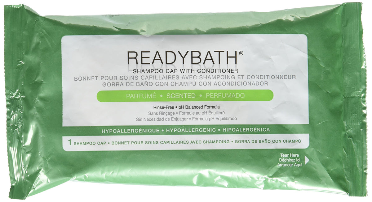 - Each Ready Bath disposable cap is pre-moistened with a rinse-free shampoo and conditioner to cleanse and condition the hair