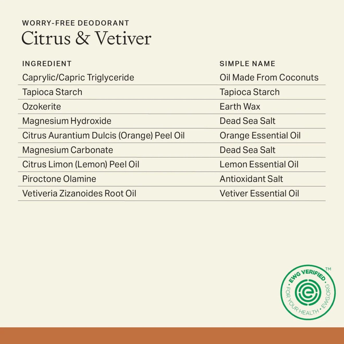 Each and Every All Natural Deodorant Stick, Citrus Vetivert