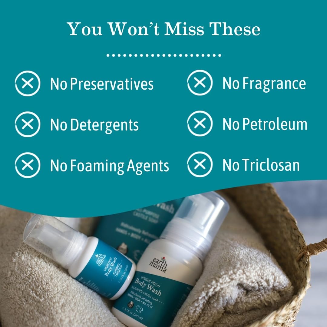 Earth Mama Ginger Fresh Foaming Hand Soap and All Purpose Body Wash for Sensitive Skin, Liquid Castile Soap with Organic Coconut Oil, Shea Butter, Calendula, & Aloe, 5.3 fl oz