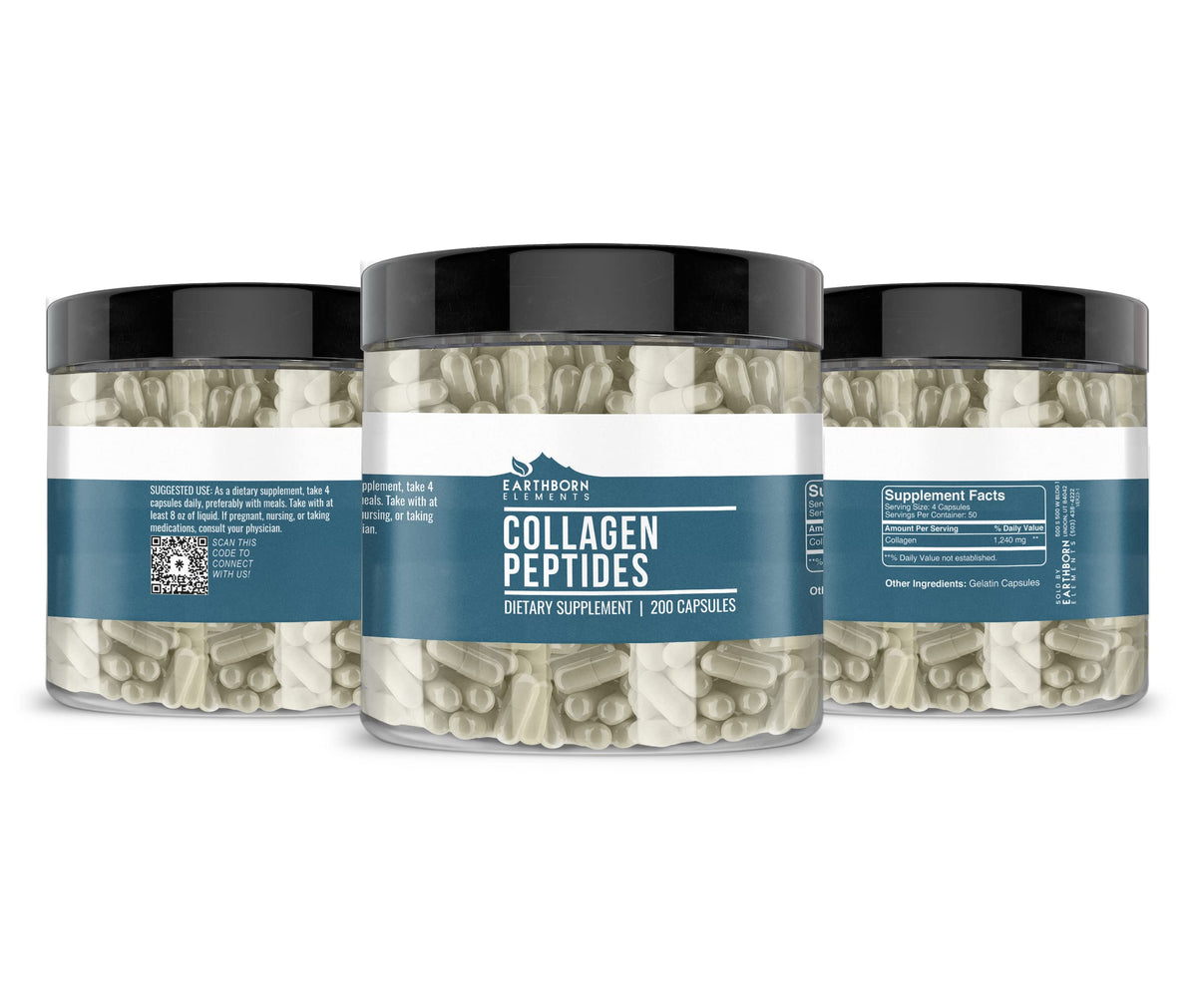 Discover the benefits of Earthborn Elements Collagen Peptides in 200 capsules. This pure and undiluted formula contains no additives, providing you with the essential collagen your body needs.