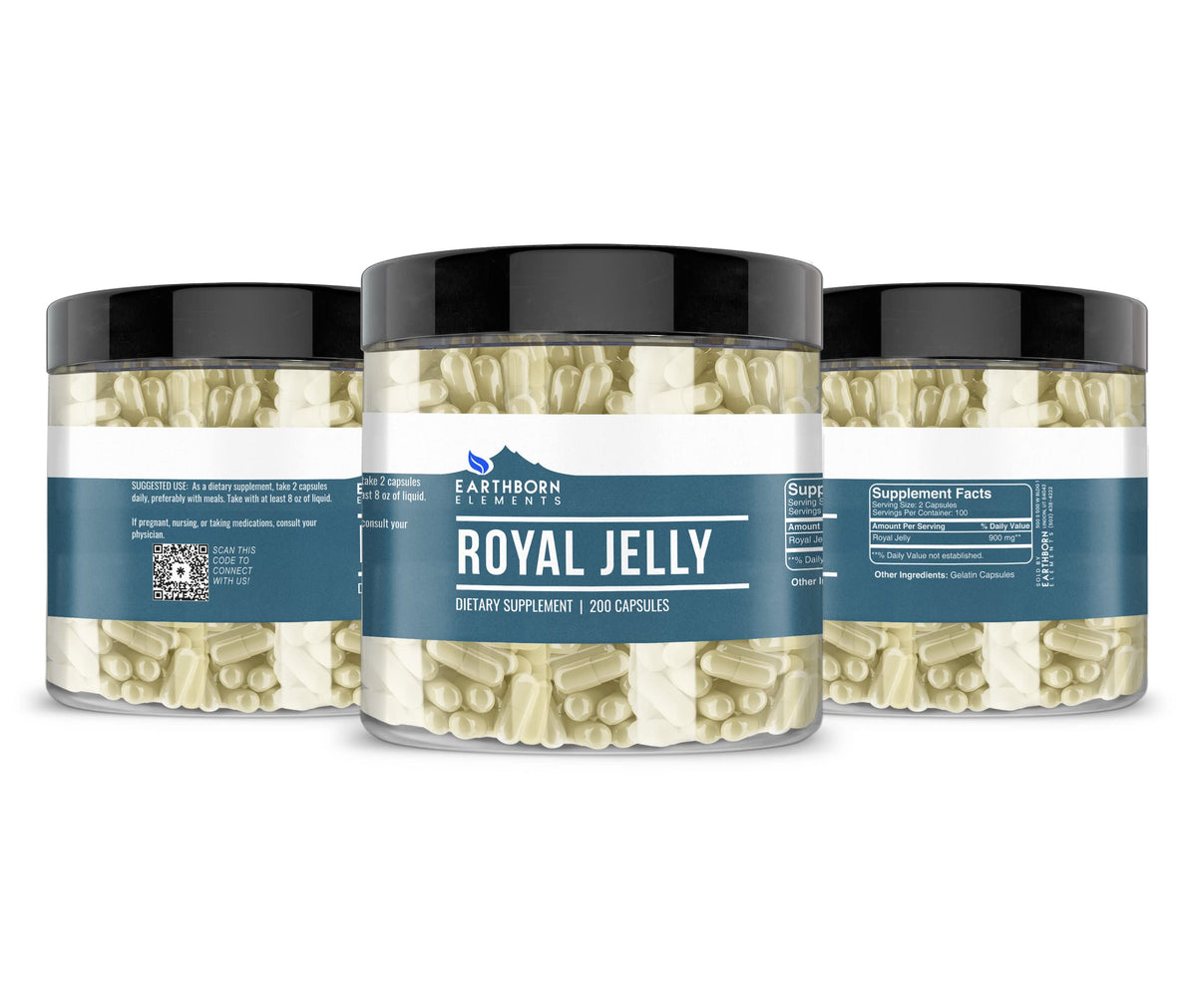 Earthborn Elements Royal Jelly Capsules offer pure and undiluted royal jelly, known for its natural health benefits.