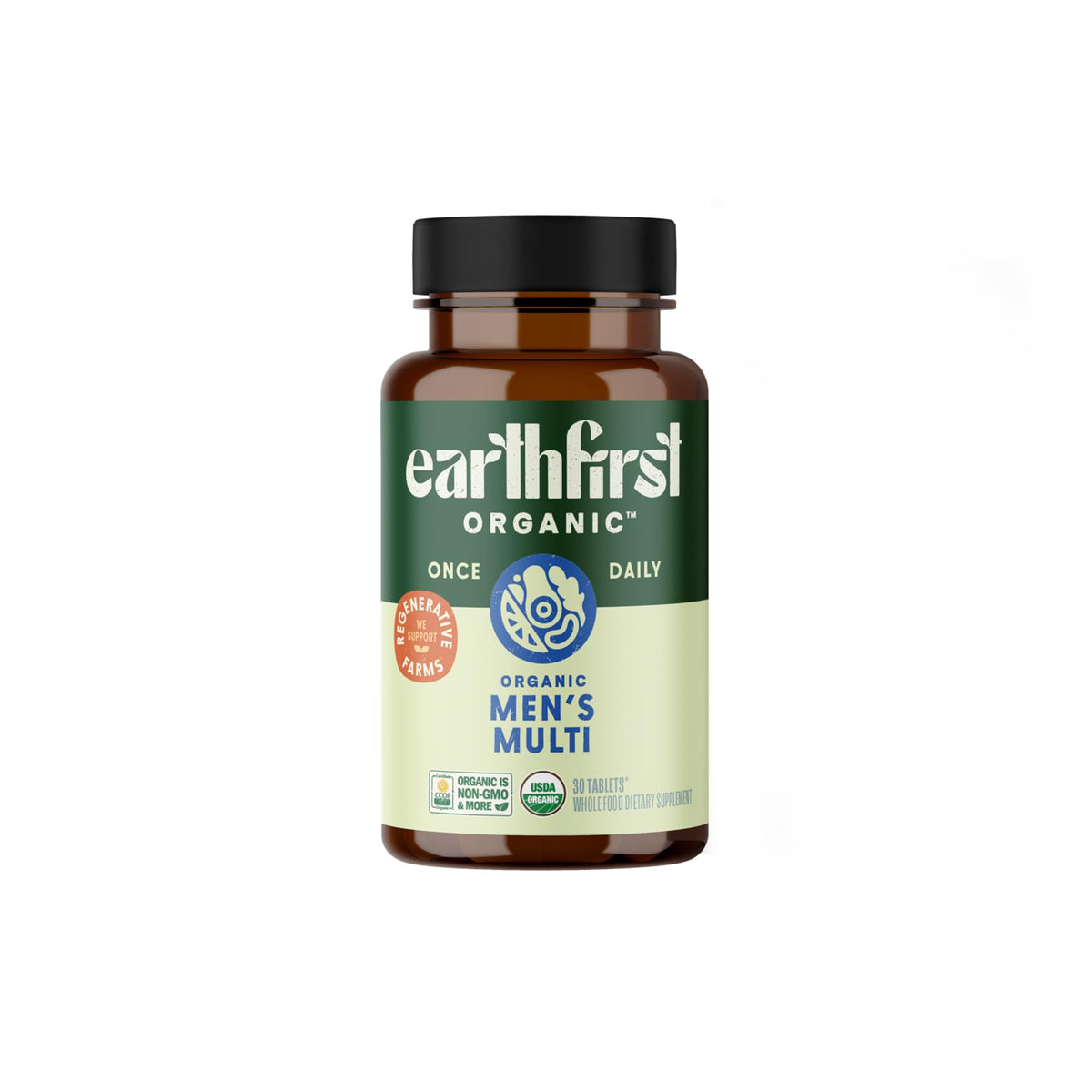 Prioritize your health with EarthFirst Organic Men’s Multi Once Daily. This men's multivitamin is a blend of 19 vitamins sourced from herbs and superfoods, providing comprehensive daily nutrition and support for an active lifestyle.