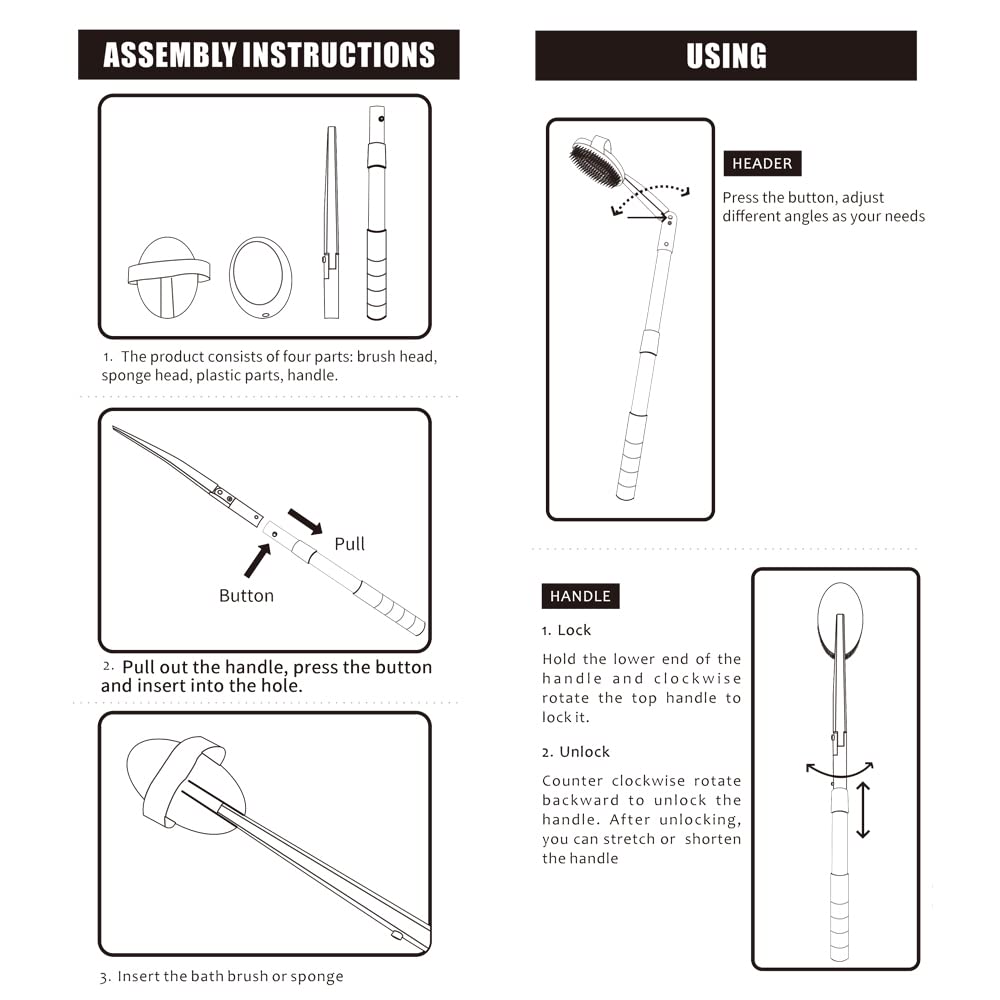 EASACE Long Handle Bath Body Brush & Lotion Applicator for Back Scrubber, Shower Brush with Soft Bristles for Wet or Dry