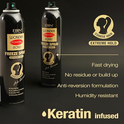 EBIN NEW YORK Wonder Ponytail Bond Freeze Spray Extreme Firm Hold - Coarse Hair 8oz/ 245ml | Long Lasting Hold, 24-Hour Frizz Control, Shine Enhancing, Fast-Drying, Lightweight, All Hair Types