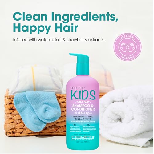 Eco Chic KIDs 2 In 1 Shampoo & Conditioner - Kids Shampoo And Conditioner, Kids 2 In 1 Shampoo And Conditioner, For All Hair Types, Salon Quality, Gentle Formula, Vegan - 16.4 Fl Oz