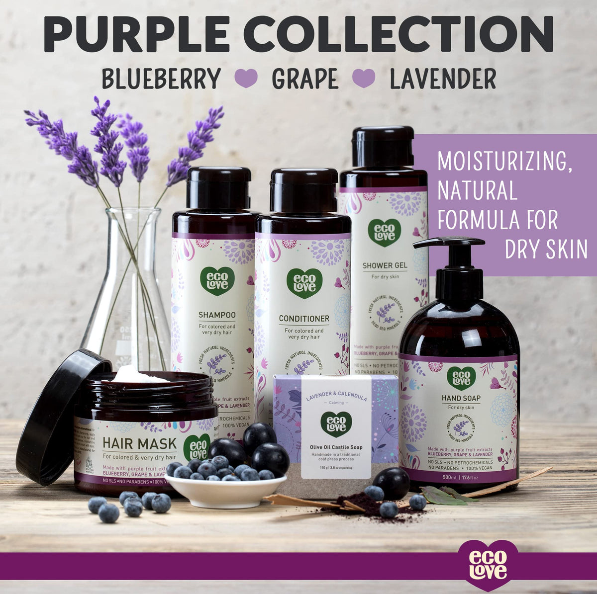 Purple : ecoLove Purple Collection Hand Soap for dry skin - Blueberry, Grape & Lavender. 100% VEGAN (17.6 Oz)