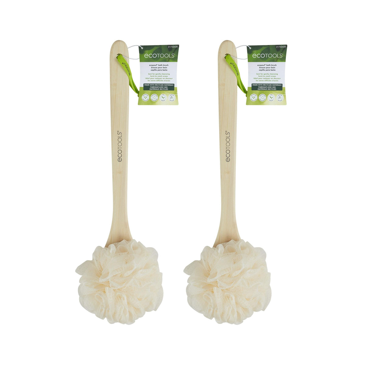 | model name | EcoTools EcoPouf Bath Brush, Shower Loofah with Long, Ergonomic Handle, Cleans HardtoReach Areas, Deep Cleansing Exfoliating, Recycled Netting, Perfect for Men Women, 2 Count |