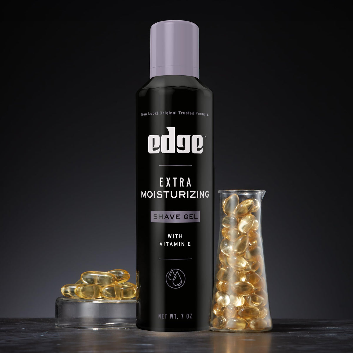 Pamper your skin with Edge Shaving Gel for Men. This 6-pack of extra moisturizing gel with Vitamin E soothes and protects your skin, reducing irritation for a smooth and comfortable shaving experience.