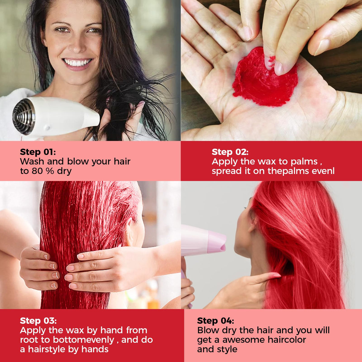 Create stunning hairstyles with EFLY Instant Hairstyle Cream Hair Pomades. This temporary styling hair color wax in red is perfect for parties and cosplay, offering easy application and quick cleaning.