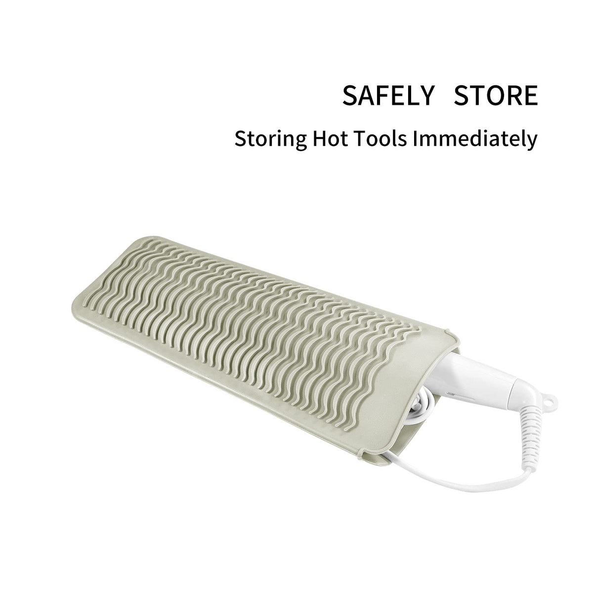 EIOKIT Silicone Heat Resistant Travel Mat Pouch for Hair Straightener,Crimping Iron,Hair Curling Iron,Hair Curling Wand,Flat Iron,Hair Waving Iron and Hair Styling Tools (1 Pack, Beige)