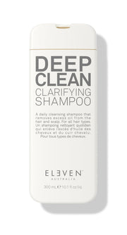 Refresh your hair with ELEVEN AUSTRALIA Deep Clean Clarifying Shampoo. This sulfate-free formula detoxifies the scalp, removes build-up, and is suitable for all hair types in a 10.1 fl oz bottle.