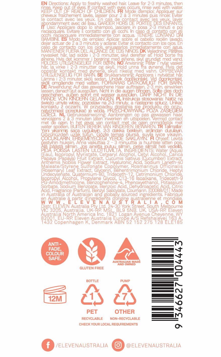 Nourish your hair with ELEVEN AUSTRALIA Miracle Hair Treatment Conditioner. Infused with hyaluronic acid, this conditioner boosts hydration, reduces frizz, and prevents split ends for healthier-looking hair.