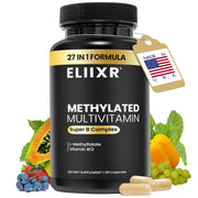 Eliixr Methylated Multivitamin Supplement for Men and Women with Active Methyl B12 and 5-MTHF Methylfolate 60 Vegetable Capsules Iron Free Made in The USA