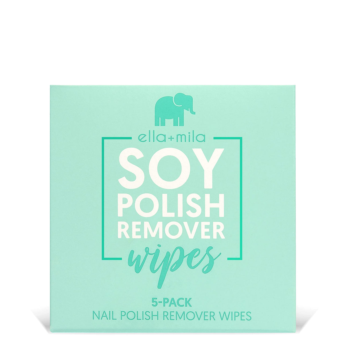Ella+Mila Soy Nail Polish Remover Wipes - Acetone Free Unscented, Vitamin A, C, E Oil (5-Pack)