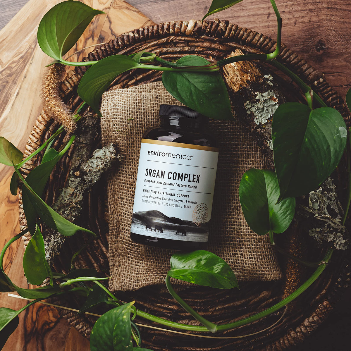 Enviromedica Grass-Fed Organ Complex provides a nutrient-dense blend of freeze-dried beef liver, kidney, heart, and pancreas to support overall health and vitality.