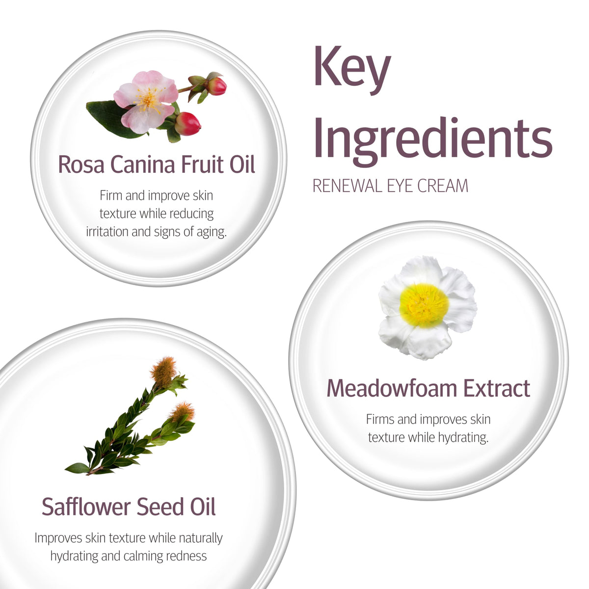 Short Product Description :: A moisturizing must-have for all skin types, Renewal Eye Cream helps diminish the visible appearance of fine lines and wrinkles around the delicate eye area. Key ingredient complexes reveal youthful, healthy-looking, beautiful skin. Soft-focus technology scatters and diffuses visible light, helping reduce the visible appearance of dark circles and puffiness. The Anti-Aging Eye Duo–Luminous Eye Serum paired with Renewal Eye Cream–enhances results for a brighter, more youthful look.