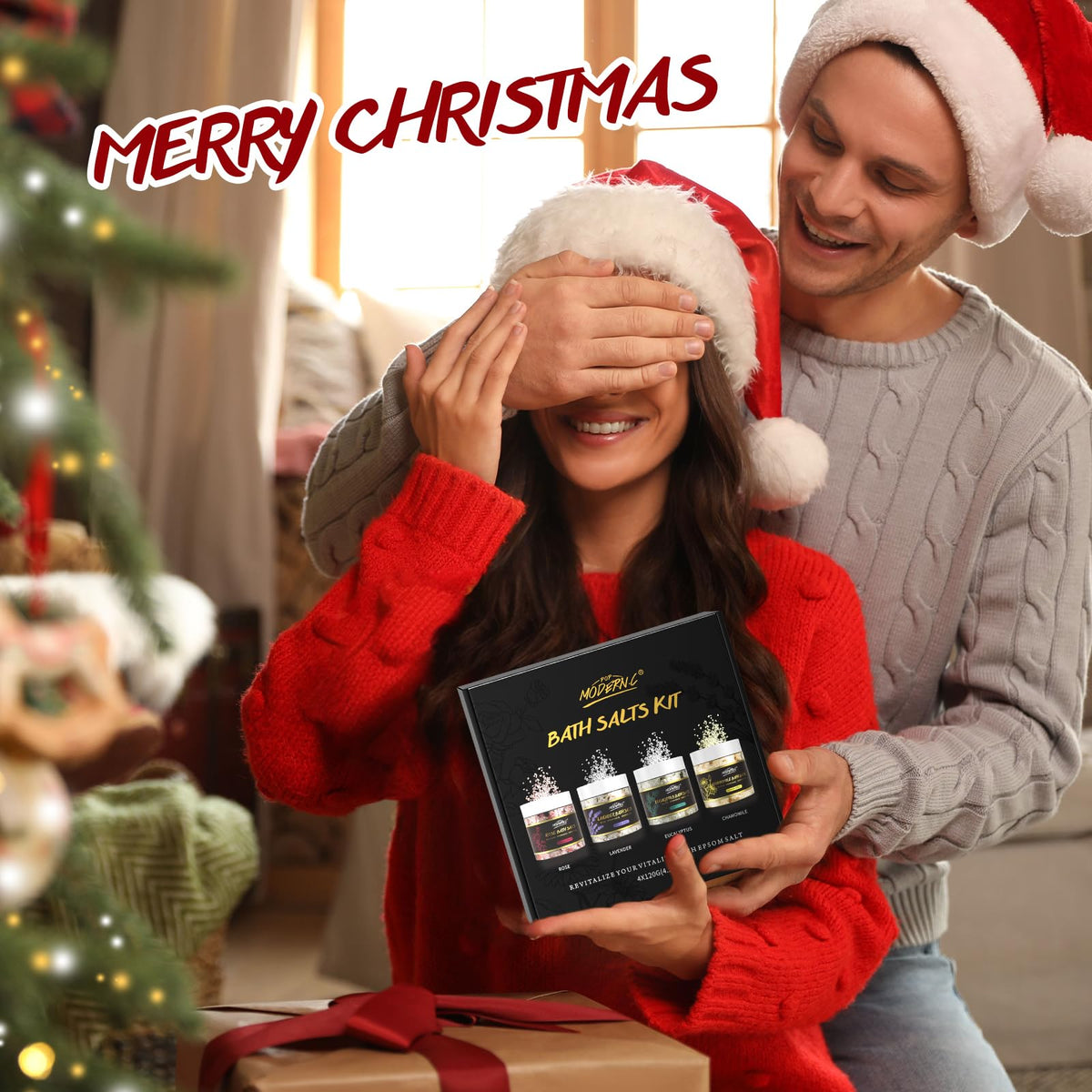 Indulge in a luxurious spa experience with Epsom Bath Salts Gift Set for Soaking. This set of 4 bath salts infused with essential oils like lavender, eucalyptus, rose, and chamomile offers women a relaxing escape to unwind and rejuvenate.