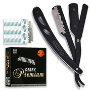 Straight Edge Razor with 100 Single Derby Straight Razor Blades-Barber Straight Razor-Close Shaving Manual Shaver-Disposable Straight Razor Blades (Matte Black Razor w/Black 100 Derby Blades)