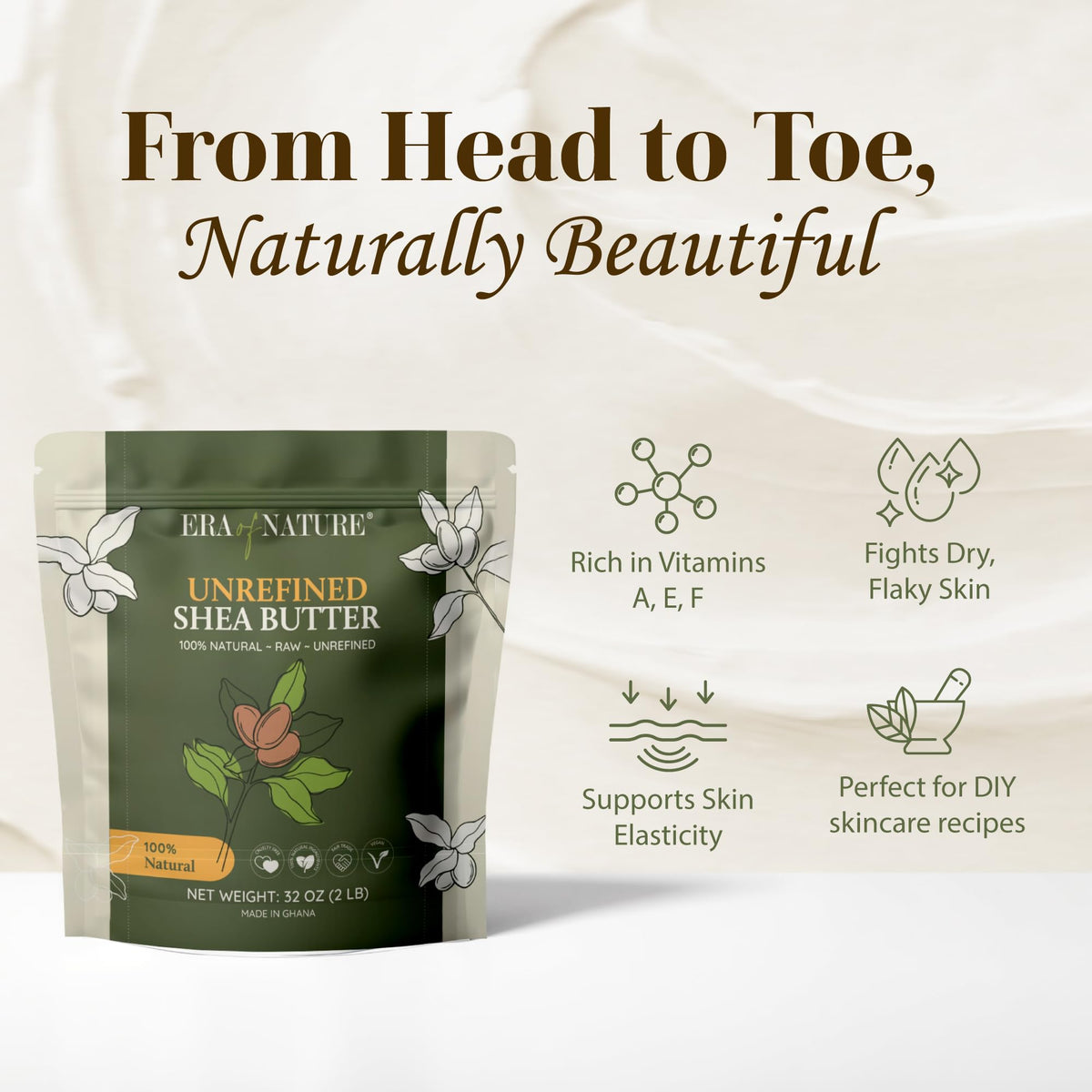 era of nature Organic Unrefined Raw African Ivory White Shea Butter 32oz - Moisturizing Raw Shea Butter Bar for Skin & Hair, DIY Lip Balm Base, Cream, Soap & Lotion Making Supplies Kit, Skincare