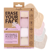 ERASE YOUR FACE Face Reusable Makeup Removing Cloths With Friendly Packaging By Danielle Enterprises 4 pack D50007, ECO, 1 Count