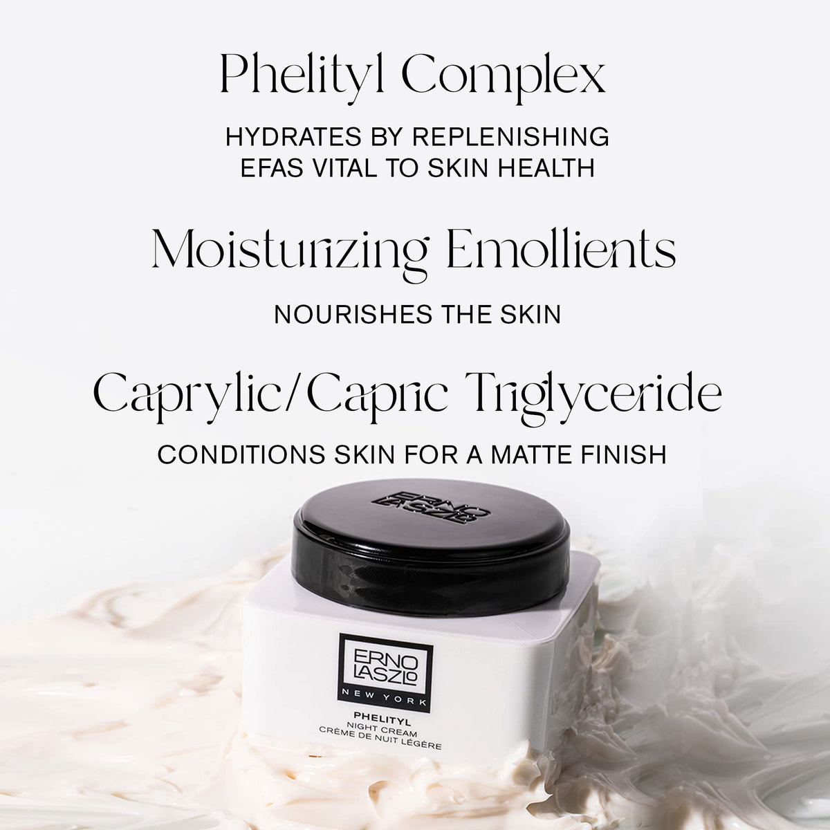 Revitalize your skin overnight with Erno Laszlo Phelityl Night Cream. This 1.7 fl. oz. cream is formulated to deeply hydrate and nourish your skin while you sleep, leaving you with a radiant and refreshed complexion in the morning.