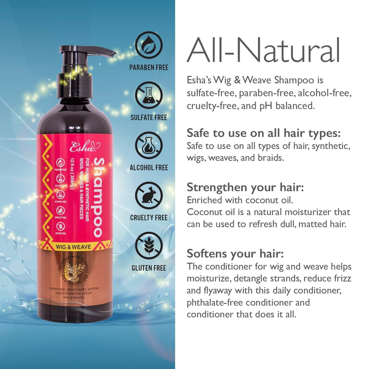 Esha Wig & Weave Revitalizing Shampoo | Restores & Renews | For Human & Synthetic Hair - (12 Oz.) (Small, 4, Fl Oz)