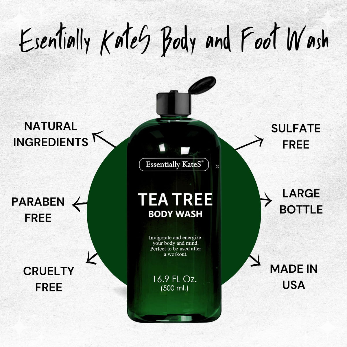 Essentially KateS Tea Tree Body Wash 16.9 fl oz - 100% Natural - Fights Body Odor & Irritation - Helps Athletes Foot, Ringworms, Jock Itch, Acne, & Eczema