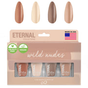 Eternal Nude Nail Polish Set for Women in WILD NUDES offers a collection of brown nail polish shades for a chic and sophisticated look. This set of 4 long-lasting and quick-dry nail polishes is perfect for DIY manicures and pedicures, providing salon-quality results at home.