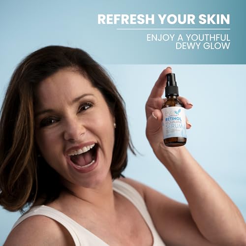 Eva Naturals Anti-Aging 1% Retinol Serum For Face - Granactive Retinoid with Squalane Dark Spots, Fine Lines & Wrinkles - Collagen Boosting Moisturizer - Pure Retinol Night Serum for Face (2 Oz)
