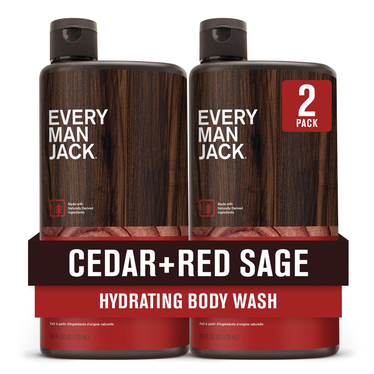 Every Man Jack Nourishing Cedar + Red Sage Mens Body Wash for All Skin Types - Naturally Derived Ingredients - Cleanse and Hydrate Skin with Coconut and Glycerin - 24oz 2 Bottles