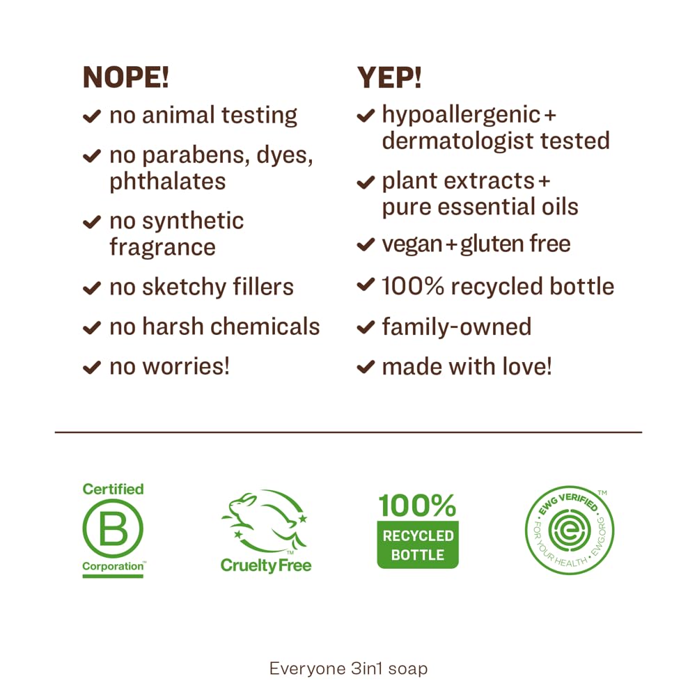 Everyone 3-in-1 Soap is a versatile product that serves as a body wash, bubble bath, and shampoo. This 32 oz. Coconut and Lemon cleanser is enriched with organic plant extracts and essential oils, providing a luxurious and nourishing bathing experience.