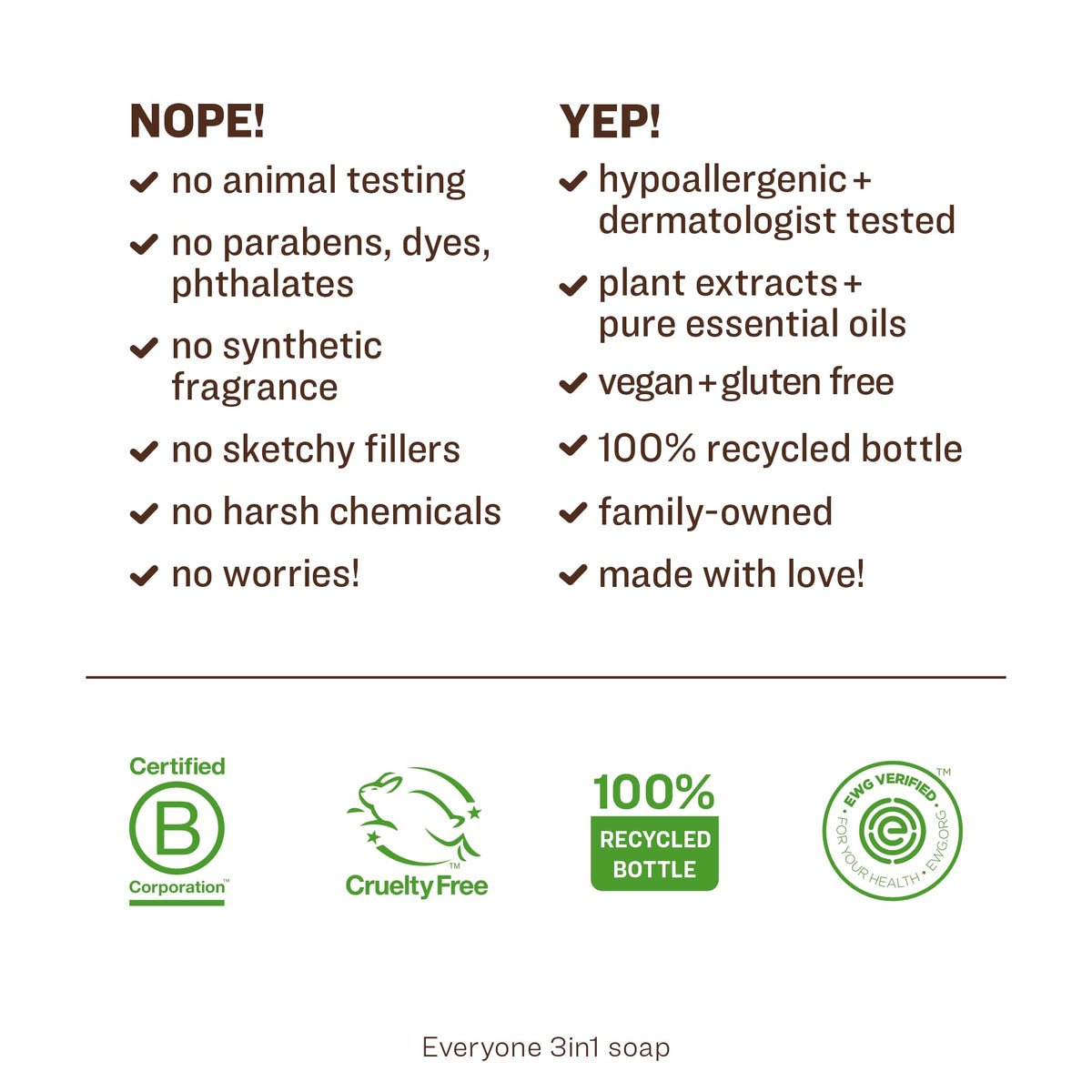 Refresh and invigorate your senses with Everyone 3-in-1 Soap. This citrus and mint-infused product acts as a body wash, bubble bath, and shampoo, providing a revitalizing cleanse.