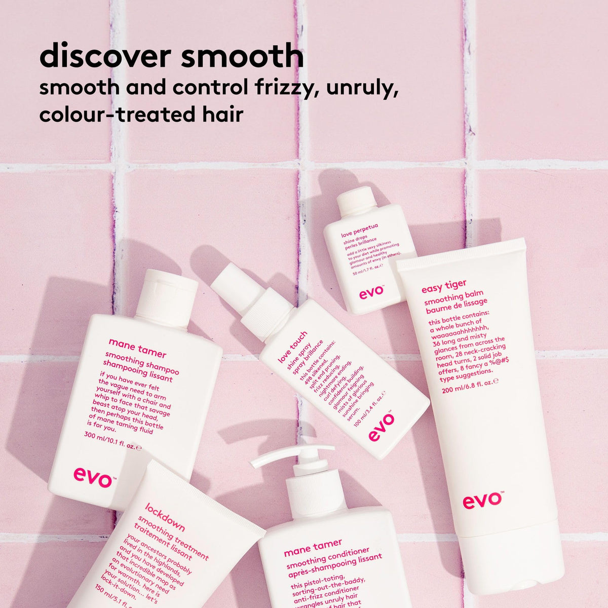 EVO Mane Tamer Smoothing Conditioner strengthens and softens hair, improves shine, and reduces frizz. Experience salon-like results at home with this 300ml / 10.1fl. oz formula.