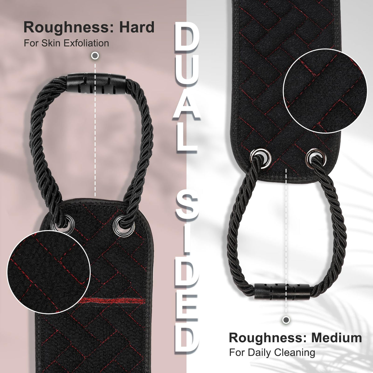 Exfoliating Back Scrubber with Upgraded Handles, 38.5 Inch Double-Sided Body Scrub Bath Exfoliator, Exfoliating Washcloth for Use in Shower, Back Washer to Deep Clean Your Skin for Men & Women (Black)