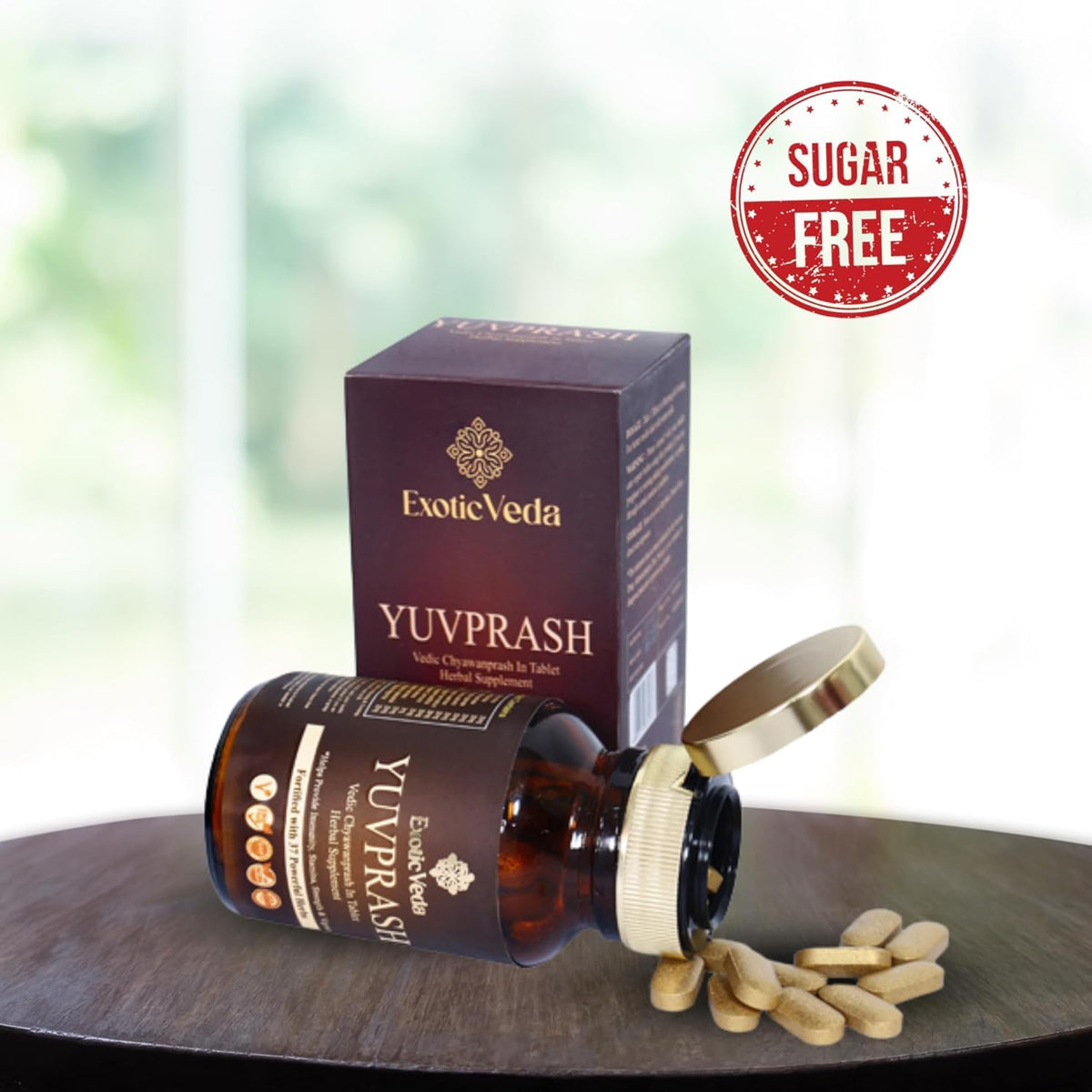 Exotic Veda Chyawanprash Tablets, YuvPrash Vedic Chyawanprash Sugar Free for Women and Men, Daily Multivitamins: 60 Tablets