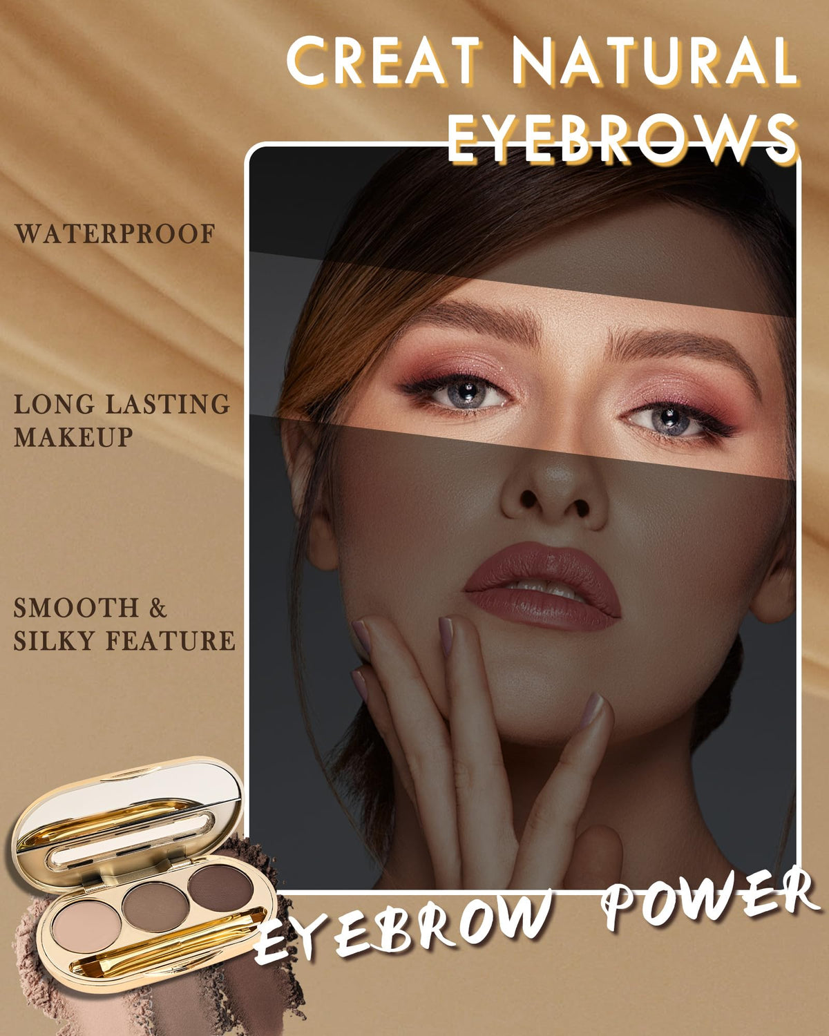 Define and enhance your eyebrows with Eyebrow Powder Makeup Kit. This palette offers long-lasting, waterproof brow tinting in three natural shades.