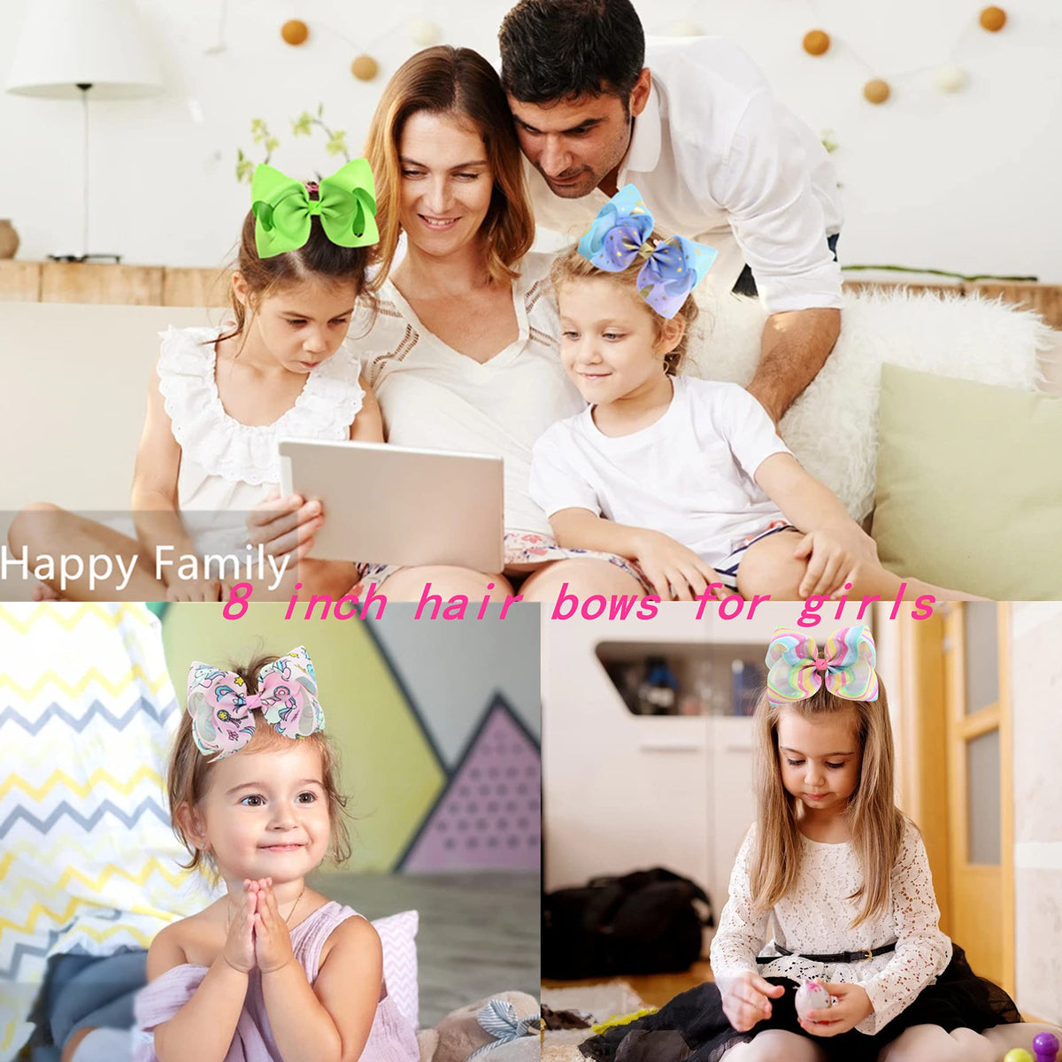 Style your girl's hair with Eyegla Hair Bows. This pack of 12 Large Bow Hair Clips in various colors adds a fun and colorful touch to any hairstyle, making it perfect for everyday wear or special occasions.