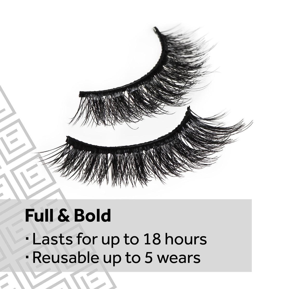 Eylure London Dramatic Reusable False Eyelashes in Style No.126 come with Latex Free Vegan Adhesive for a secure 18-hour hold, lasting up to 5 wears.