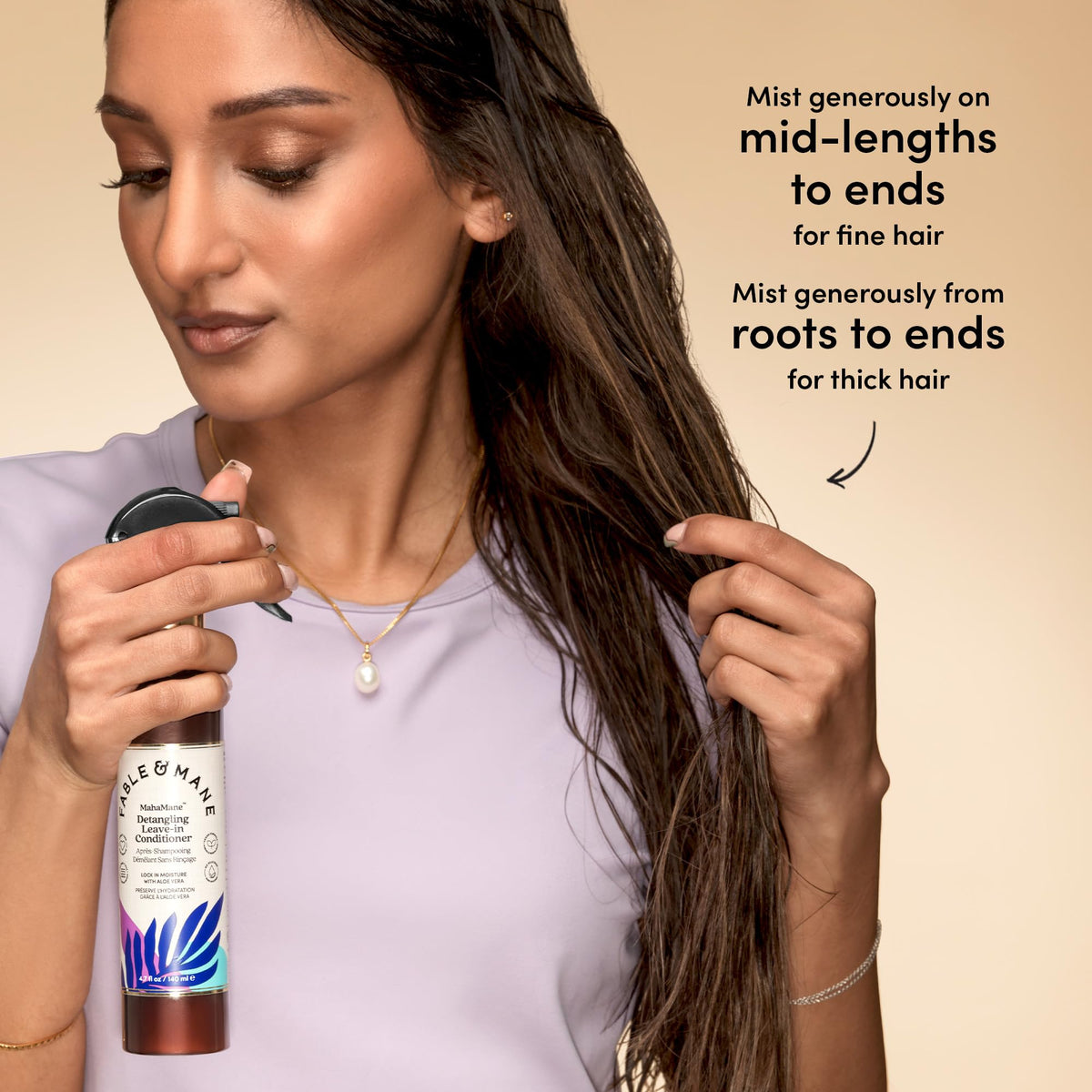 Fable & Mane Leave In Conditioner, 4.7 Fl Oz - Maha Mane Detangler Spray, Silicone-Free Leave In Conditioner for Dry Damaged Hair, Heat Protectant for Hair