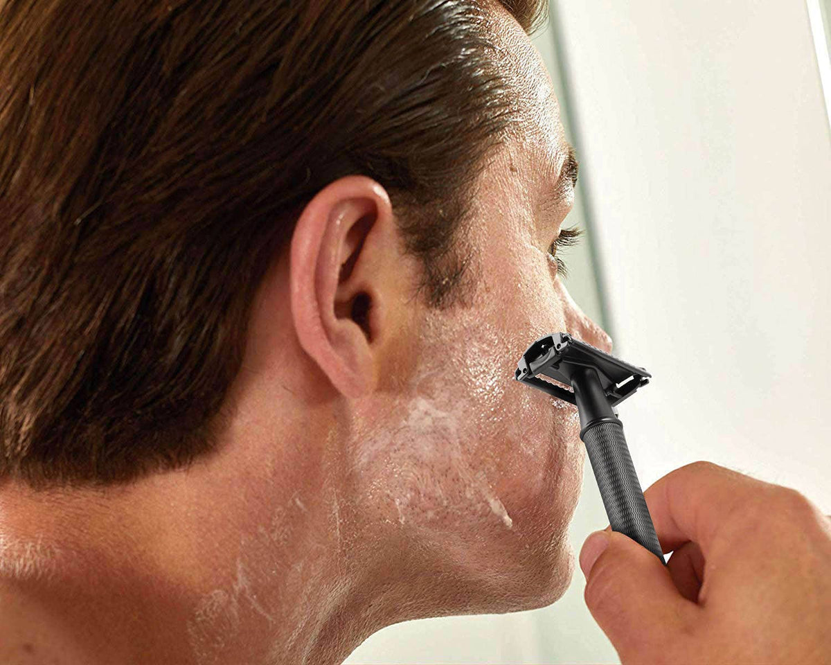 Directions :: To use this safety razor, first ensure the blade is securely inserted in the butterfly opening. Replace blades regularly for a smooth and safe shaving experience. Before each use, clean the razor to remove any residue. Hold the razor at a 30-degree angle to your skin and shave in gentle strokes. Rinse the razor frequently during shaving to remove excess shaving cream and hair.