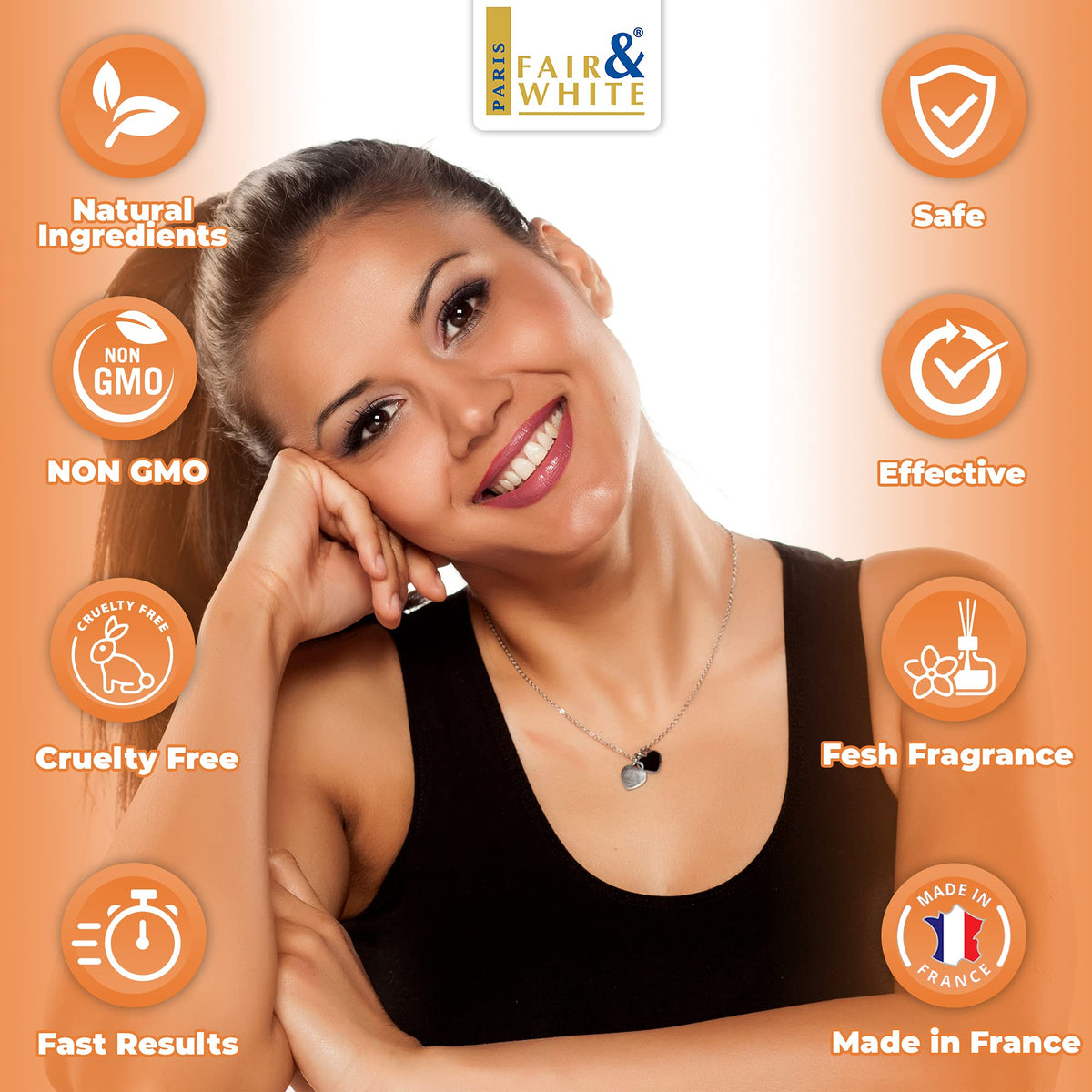 FAIR & WHITE Original Exfoliating Soap is a 200g bar enriched with carrot oil for repairing and nourishing the skin. Experience gentle exfoliation and hydration with this luxurious soap.