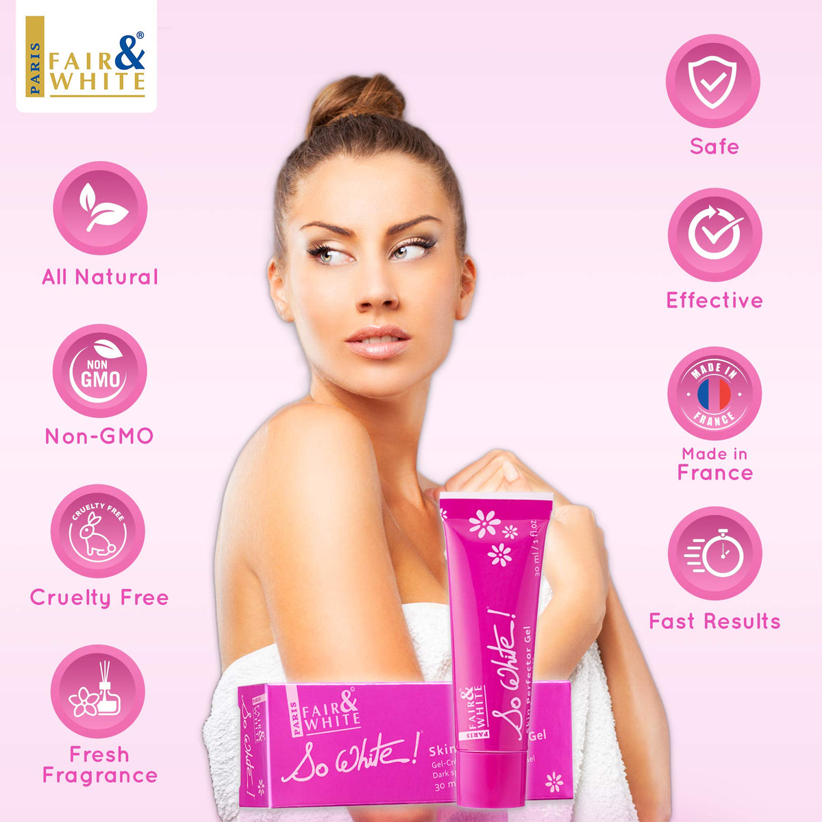 Discover the FAIR & WHITE So White Skin Perfector Gel, a powerful solution for achieving flawless skin. This gel, in a convenient 1 fl oz size, is designed to enhance your skin's natural radiance and clarity.